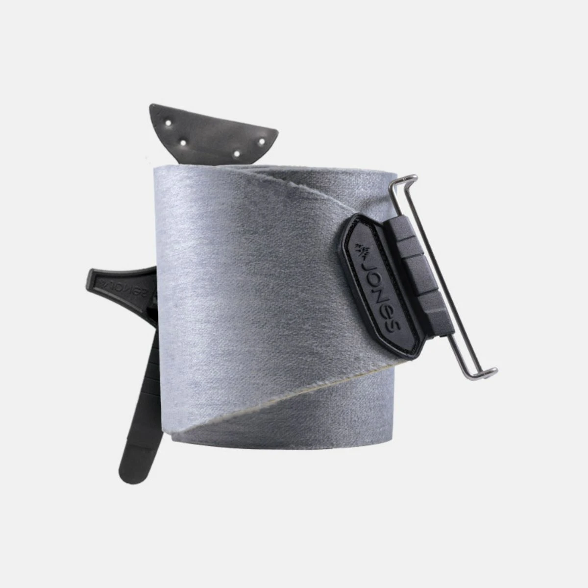 The Nomad skin fibers are 70% Mohair and 30% Synthetic Nylon. The natural mohair fibers deliver exceptional glide in any snow condition because they remain soft and flexible at any temperature. The nylon fibers provide extra traction when the skin track gets steep or icy and improved durability over 100% Mohair skins. Nomad skins are PFC-free and are coated with Bluesign-approved EVER DRY 3.0 Anti-glopping treatment to improve performance in wet snow. Jones Nomad PRO Skins are also laminated with RUBBER SAFER SKIN backing. This rubber layer keeps the skin from absorbing water and makes the skins easier to pull apart. Nomad skins are available in two models: Trim-To-Fit with Universal Tail Clip and Pre-Cut with Quick Tension Tail Clip. The Quick Tension Tail Clip adjusts in seconds, provides the perfect skin tension and is compatible with all Jones splitboards 2016 and newer.